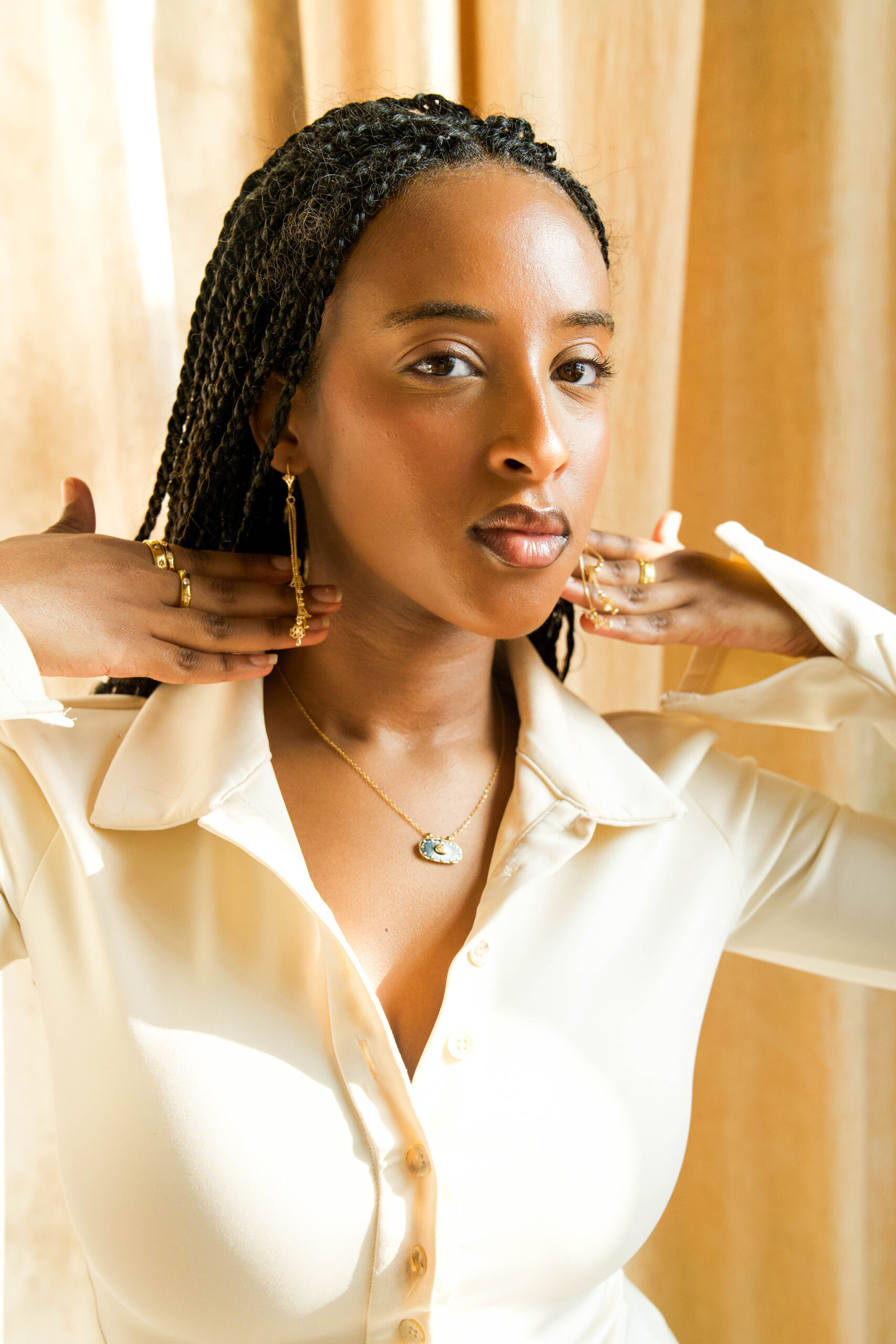 Sculptural gold charm accents